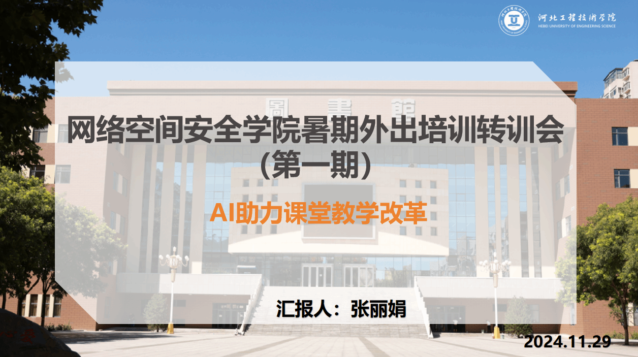 2024年11月29日,英国上市公司365举办了以“AI助力课堂教学改革”为主题的暑期外出培训转训会。本次培训由张丽娟老师主讲,英国上市公司365全体专任教师参加。