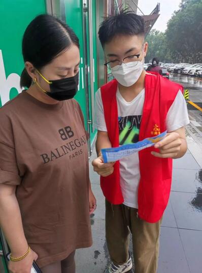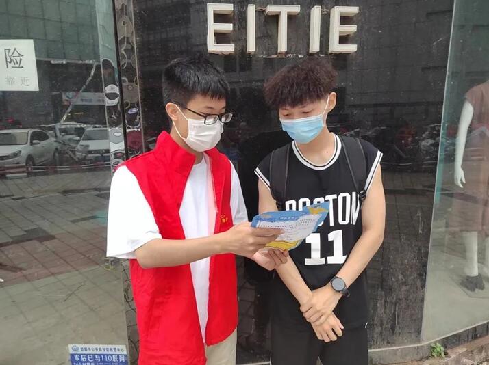 实践队员们深知有效切断疫情扩散蔓延渠道,就必须把社区这道防线守住。为此他们进入居民社区、商铺、主流干道等人流量较多的区域,派发防疫宣传单,将“三个重点”、“四早”、“四应四进”、“五个到位”传递给居民,耐心为人们讲解国内疫情现状、疫情常态化下社区如何防范、怎样正确保持卫生等知识,认真开展入户疫情防控赋能宣传工作。