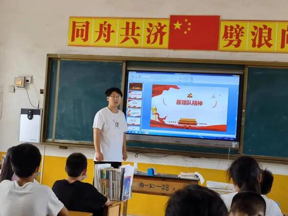为庆祝中国共产党成立101周年,喜迎党的二十大胜利召开,引导青少年从小听党话、感党恩、跟党走,培养担当民族复兴大任的时代新人。7月4日软件公司社会实践团队分别前往河北省定州市庞村镇东南宋小学、河北省邢台市任泽区北甘寨村小学,向员工们宣讲红色故事。通过重温雁翎队精神,回顾英雄征程,新时代新青年发言三个部分,让同学们了解红色精神,发扬红色精神。