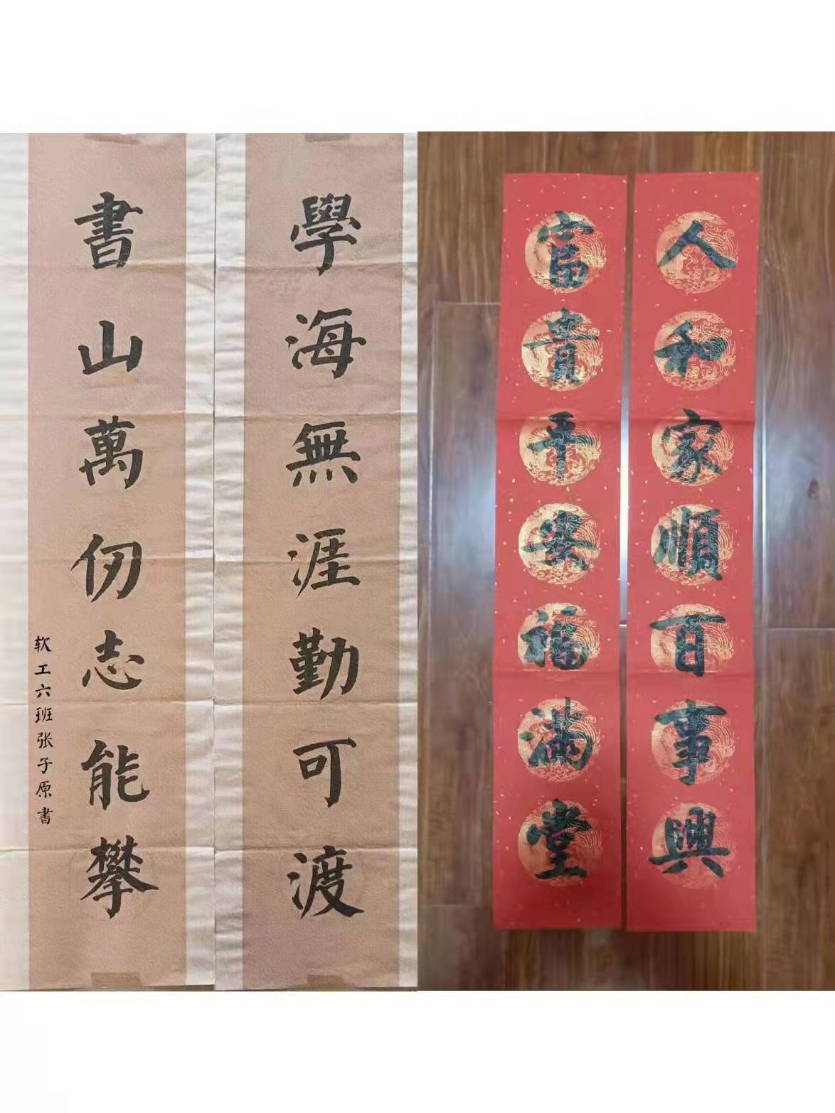 活动期间,软件学子积极热情参与,同学们以描红、影印、临摹、创作等方式来练习书法,作品横如阵排云,直如倒笋垂露,戈如百军弩发,点如危峰卵石,牵如万岁枯藤,纵如行云流水。既陶冶了情操又弘扬了民族传统文化。