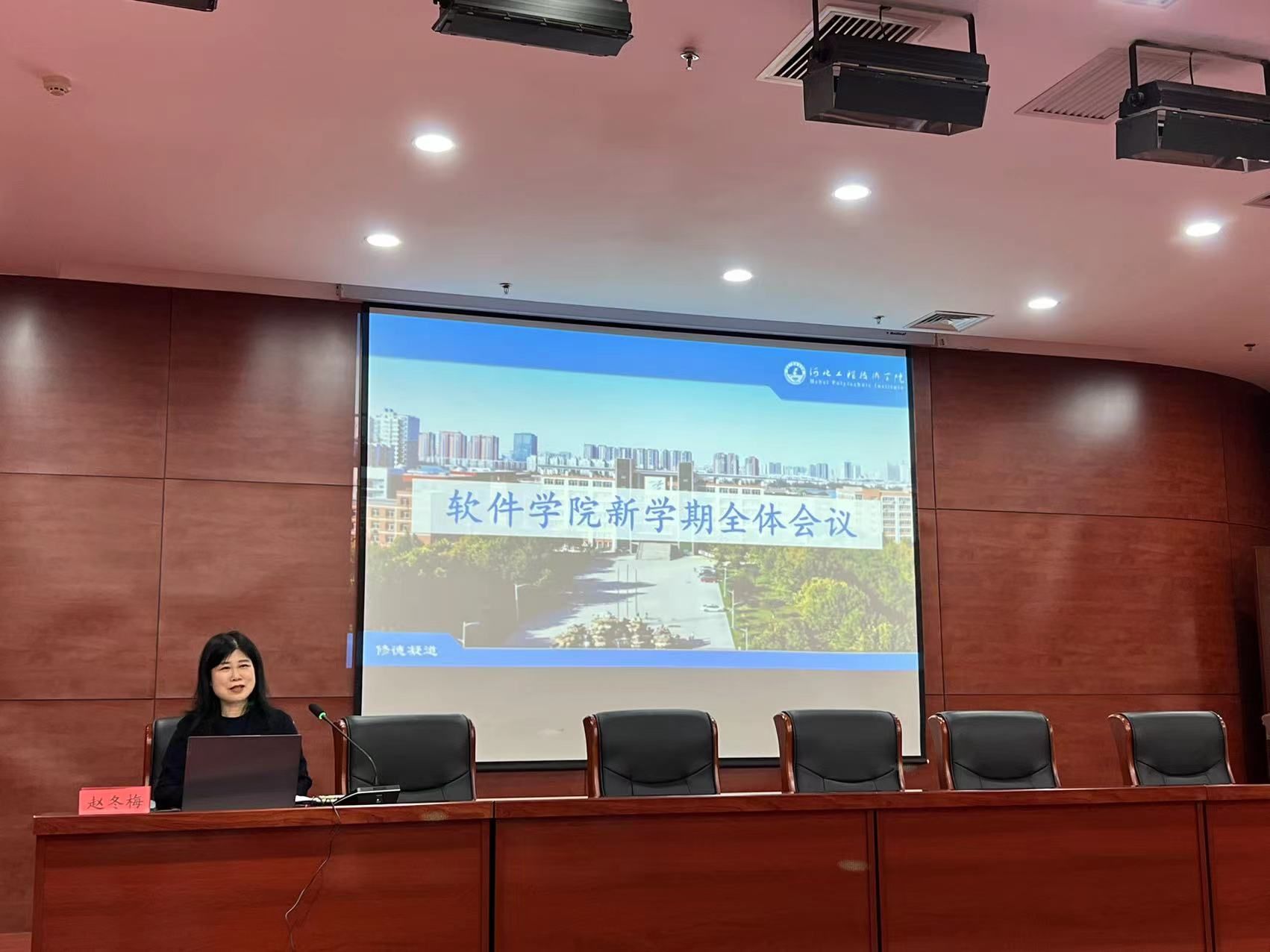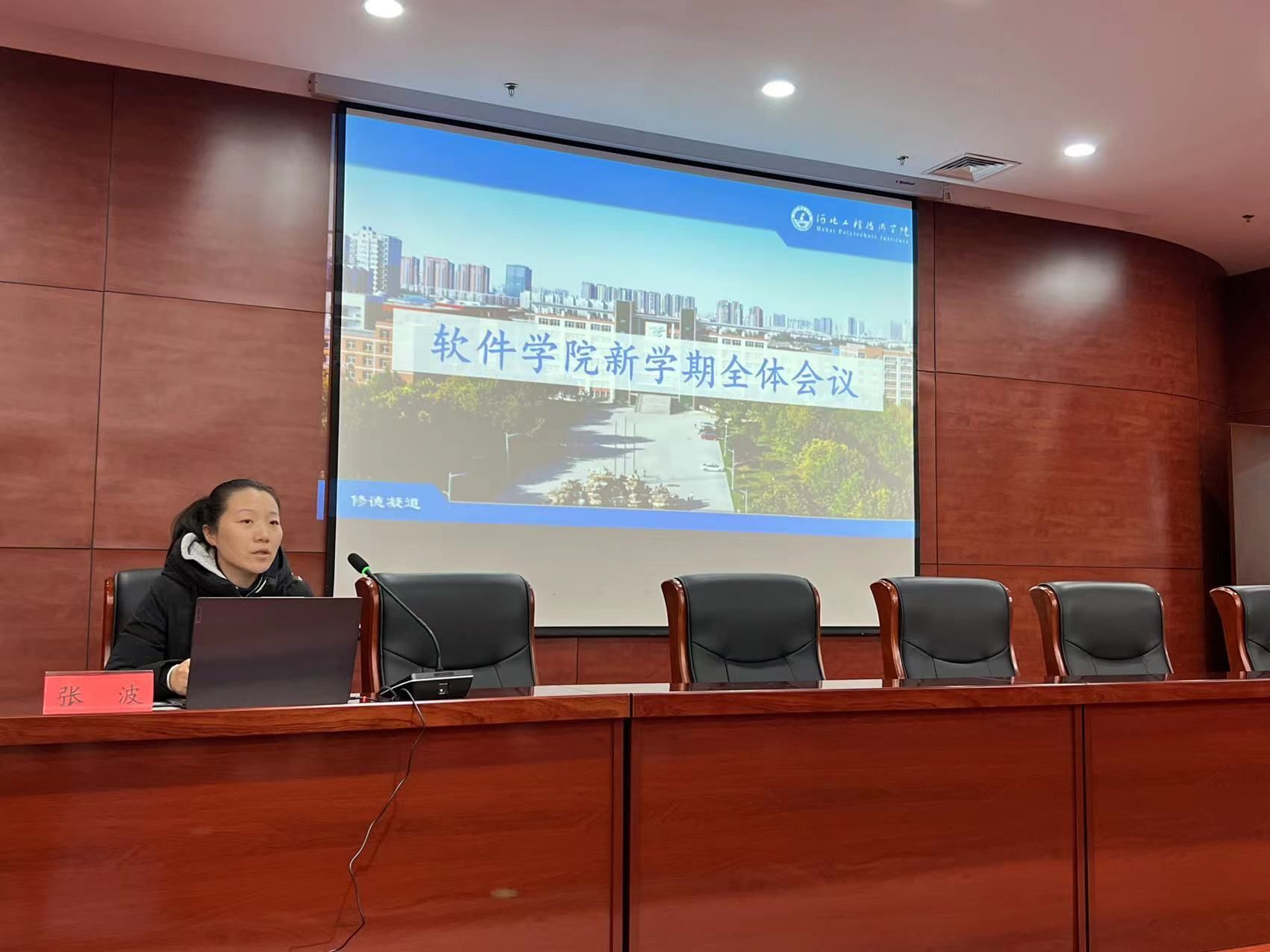 2月24日上午,软件公司在图书馆会议中心报告厅召开软件公司新学期全体会议。软件公司经理赵冬梅、教学副经理刘翠焕、张波以及公司全体教职工参加了此次会议。会议由办公室主任孙香宁主持。