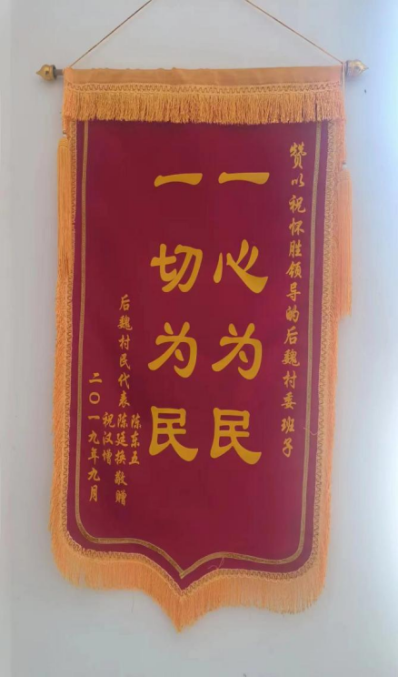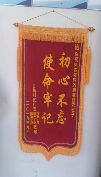 祝书记虽然上任时间不长,但是为村中做出了很大的贡献,在村中修路遇到资金问题时,祝书记自掏腰包为工人发工资,保证工程的有效进行,因此还收到了村民送的锦旗。