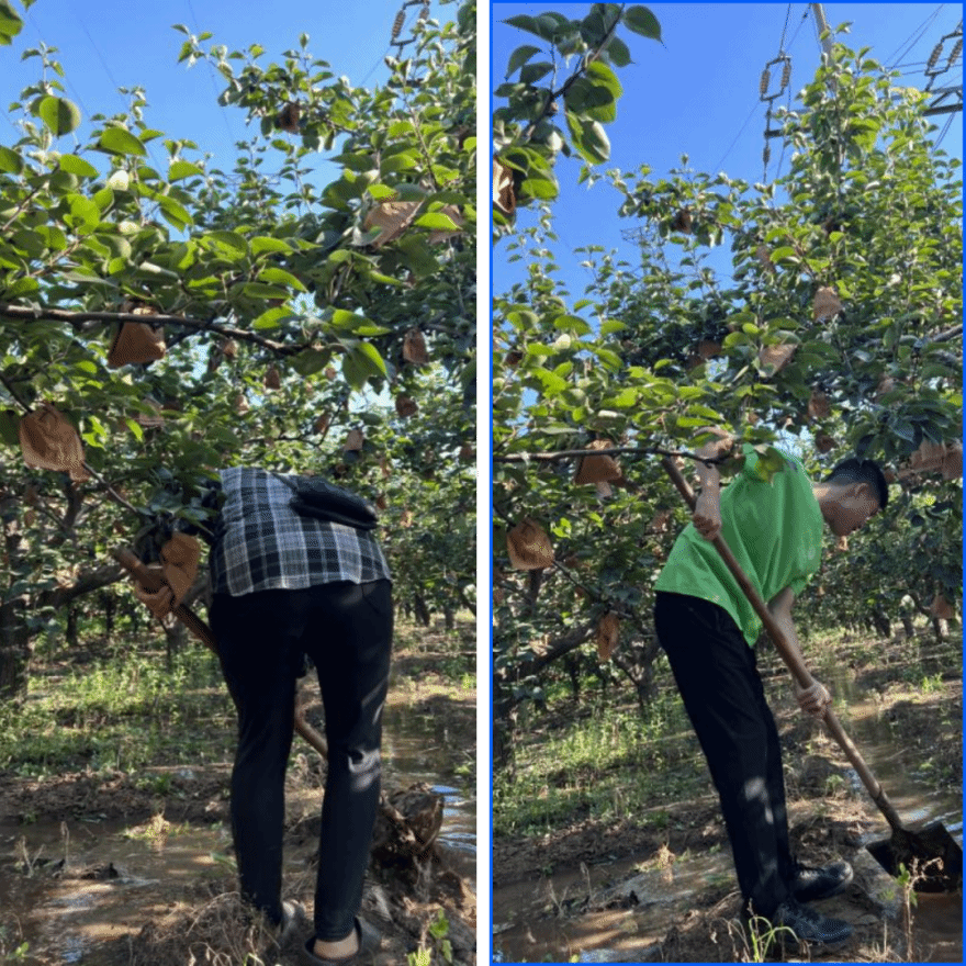 接着,我们又进行实地采摘并与农户进行了深入的交流。我们了解到他们的种植经验、困难和问题。他们普遍反映销售渠道不畅、病虫害防治成本高以及天气变化对梨树的影响等问题。通过与农民的交谈,我们向他们提供了相关的建议和解决方案,开拓新的销售渠道、加强病虫害防治工作等。