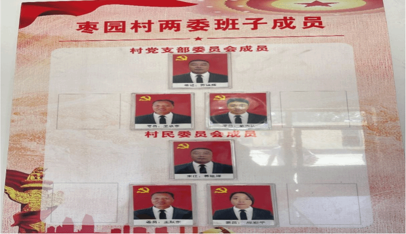第一站我们来到了枣园村村村委会。我们团队参观了枣园村村委会办公室之后,我们与当地的党总支委员-——苏建辉主任见面。苏建辉,中国共产党党员,1967年9月出生,2000年入党,在支部工作15年。