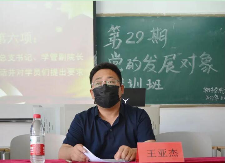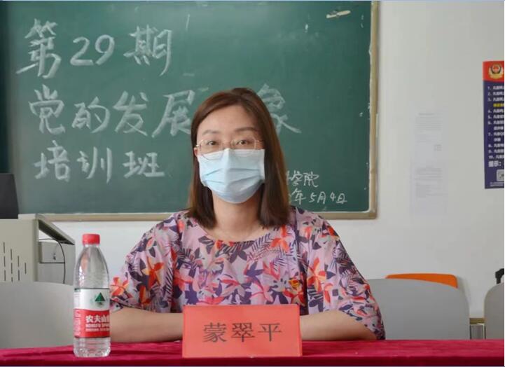 为深入贯彻落实习近平新时代中国特色社会主义思想,端正入党动机,深入推进党史学习教育。软件公司于2022年5月4日在次教408教室,开展第29期党的发展对象培训班开班仪式。软件公司党总支书记、学管副经理王亚杰经理,员工党支部组织委员周玉妹老师,团总支书记于录老师,21级年级组长蒙翠平老师以及本期培训班的全体学员出席会议。会议由员工党支部宣传委员杨海莲老师主持。
