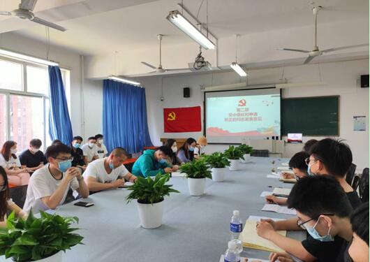 本次会议议题是讨论本支部预备党员提永刚等44名同志的转正事宜。因近期疫情反复,为配合疫情防控要求,在校外实习而无法返校参会的党员同志采取视频连线的方式参加了本次会议。