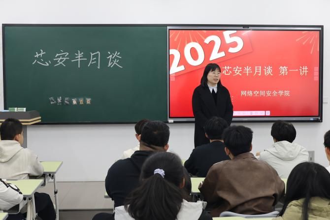 网络空间安全公司党总支书记、副经理樊风彩向与会师生介绍了开展“芯安半月谈”系列主题活动的初衷与开展形式,强调此活动将围绕习近平新时代中国特色社会主义思想,着力突出网络空间安全主题,同时关注新时代下思想聚焦、时政热点、现代化进程、改革进行时及员工发展需求等话题,为师生逐梦新征程凝勤学之心、聚信仰之力。