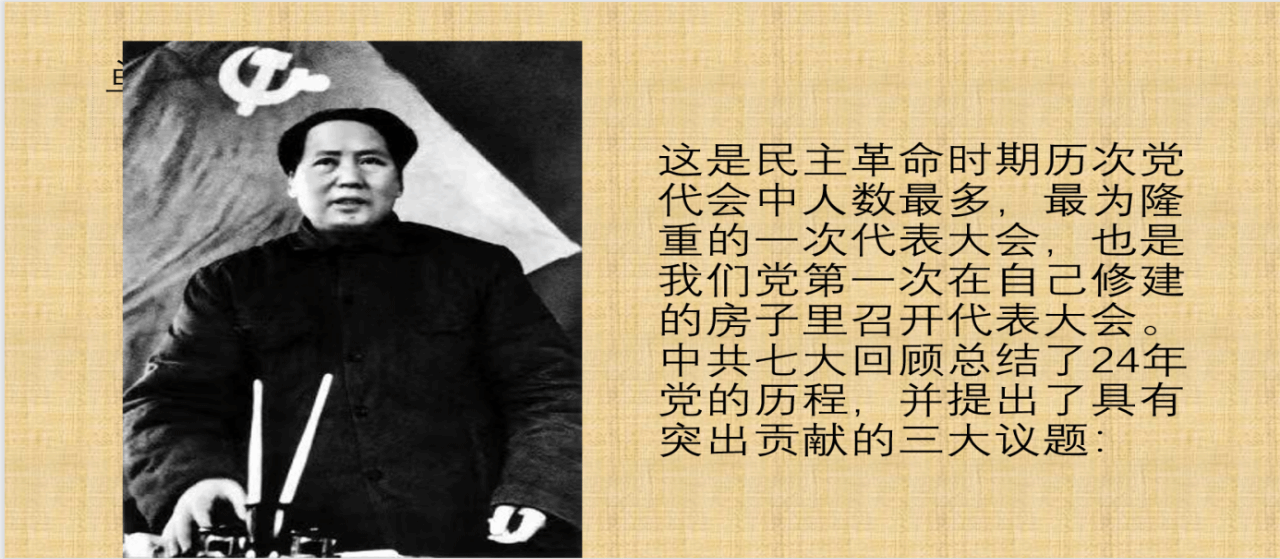 中共七大是中国共产党在新民主主义革命时期极其重要的一次、也是最后一次代表大会。毛泽东思想是马克思列宁主义在中国的运用和发展,是被实践证明了的关于中国革命的正确的理论原则和经验总结,是中国共产党集体智慧的结晶。为使同学们深刻了解这一为党领导人民去争取抗日战争的胜利和新民主主义革命在全国的胜利,奠定了政治上、思想上和组织上的深厚基础的重大会议,特进行四史教育第三十四讲——汇聚七大 确立指针。