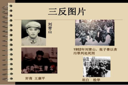 “三反”、“五反”运动是1951年底到1952年10月,中华人民共和国在党政机关工作人员中开展的“反贪污、反浪费、反官僚主义”和在私营工商业者中开展的“反行贿、反偷税漏税、反盗骗国家财产、反偷工减料、反盗窃国家经济情报”的斗争的统称。新中国成立初,不法资本家为了牟取暴利进行违法活动。在资产阶级的腐蚀和影响下,政府机关里的贪污、浪费、官僚主义现象严重滋长,有的干部堕落变质。以下是关于三反五反运动的部分图片: