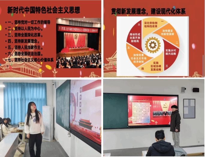 今日的四史教育专题活动为第八十九讲——“十九大”,为了给同学们更加生动形象的讲述“十九大”的相关知识,各位演讲者通过电子设备查询、图书馆翻阅相关资料等方式搜集了关于“十九大”的材料,制作了PPT,为大家展开了相关主题演讲。