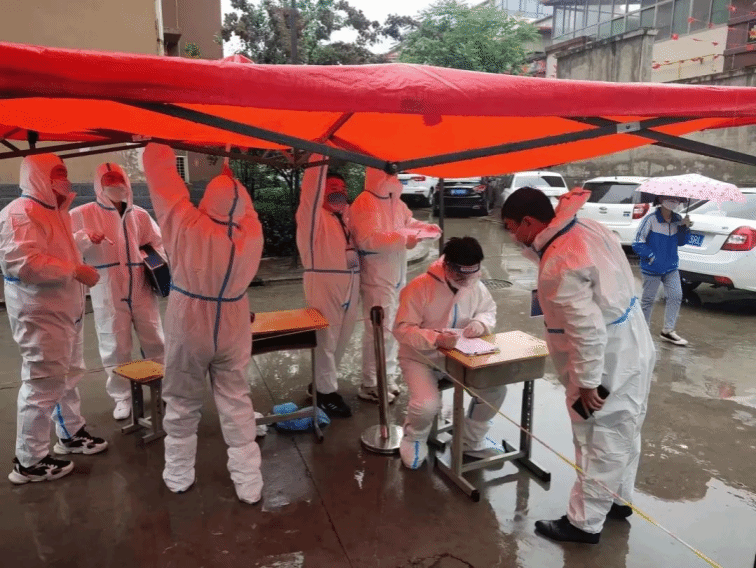 4、他们协助医护人员做核酸。维持现场秩序,为村民登记信息,指导村民核酸顺序。