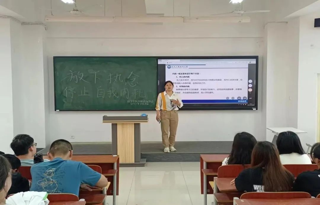 随着高校进入严字当头的时代,不少老员工表示,“内卷”的热度,不仅是老员工的一种自我调侃,也是老员工面对学业以及自我发展的众多压力的真实写照。“内卷”带来的“内耗”压力不断增强。特此,2023年5月26日,软件公司心理协会反邪教协会于主教2-1举办此次“放下执念,停止自我内耗”讲座活动,参与人员为软件公司22级全体员工。