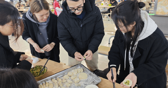 冬至大如年,人间小团圆。在我国北方,每年冬至都有吃饺子的习俗。民间一直流传着“冬至饺子夏至面”,“冬至不端饺子碗,冻掉耳朵没人管”的俗语。同学们纷纷积极参与包饺子活动,有的同学认真向其他同学学习包饺子的技巧,有的同学们现场搜索教程来学习包饺子,老师们也亲自来教同学如何快速的包饺子。尽管大家的手法略显生疏,但都饱含着热情与专注。学管副经理樊风彩看着同学们包出的“劳动成果”,和同学们也讲起了自己关于学包饺子的故事,欢声笑语中让师生之间的距离更进一步。