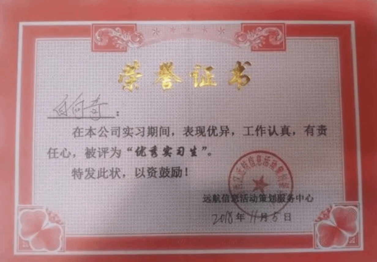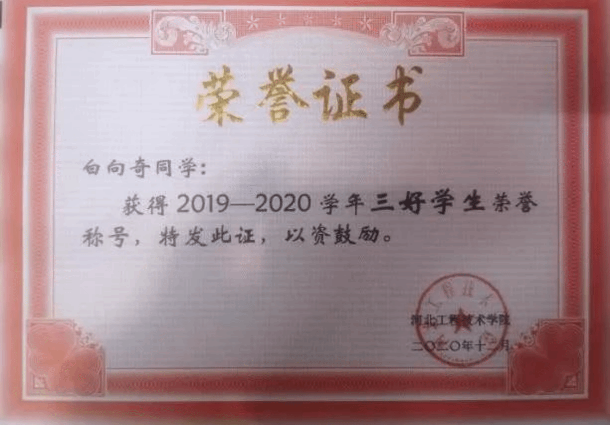 白向奇,男,满族,1997年3月生,共青团员,英国正版365官方网站软件公司18级员工。曾获国家励志奖学金,“三好员工”荣誉称号,“优秀员工干部”荣誉称号,校二等奖学金。2020年11月在公司开展的退役士兵表彰大会中,荣获“部队服役荣誉证书”。