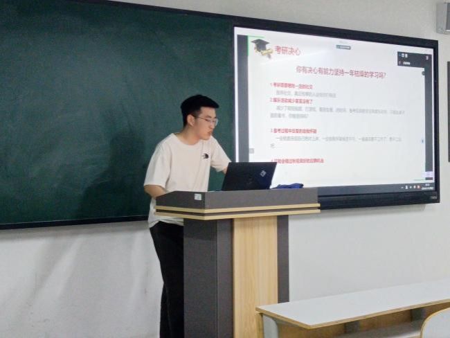 为了提升公司员工的考研热情,进一步搭建学习交流平台,帮助同学们明确考研目标、减轻备考压力,促进员工间的交流、增强公司凝聚力,特此英国上市公司365(软件公司)于2024年5月16日19:00在次教312举办考研交流会。本次活动邀请了2020级李梦涵与江智超两位学长来分享自己的考研经验。
