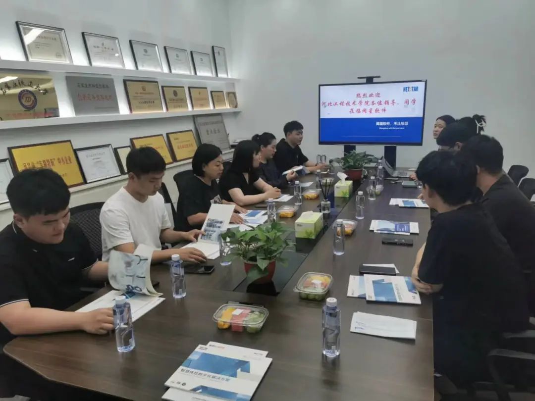 公司师生抵达河北网星软件有限公司后受到了公司领导的热情接待,双方就人才培养、实习实训、校企合作等方面开展了座谈交流。在座谈会上,企业负责人介绍说网星软件成立于2007年,是一家国家级高新技术企业,公司于2016年成立网星研究院,始终把握前沿技术发展方向,持续创新,全面提供工业互联网、大数据、云计算、人工智能、区块链、工业机器人等相关产品和服务。公司师生询问了河北网星软件有限公司的用人需求和企业文化,让员工们深入了解企业,明确就业方向,提高就业竞争力。
