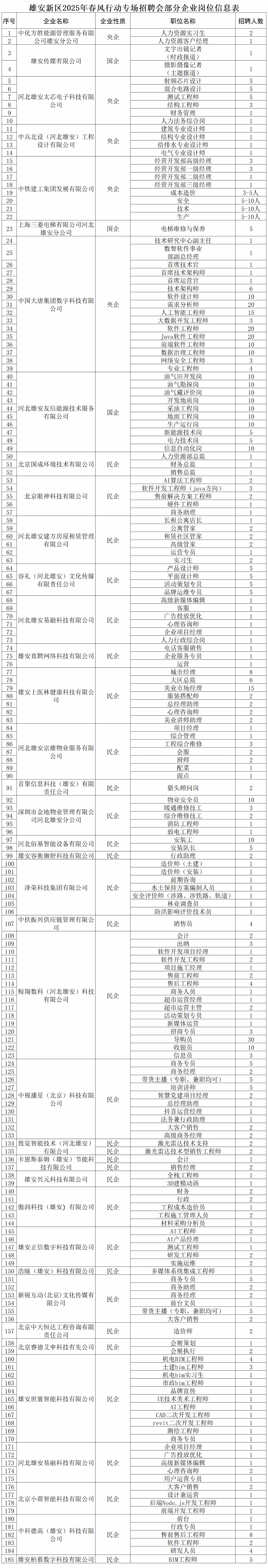 「通知公告」雄安2025年春风行动专场招聘会即将开始