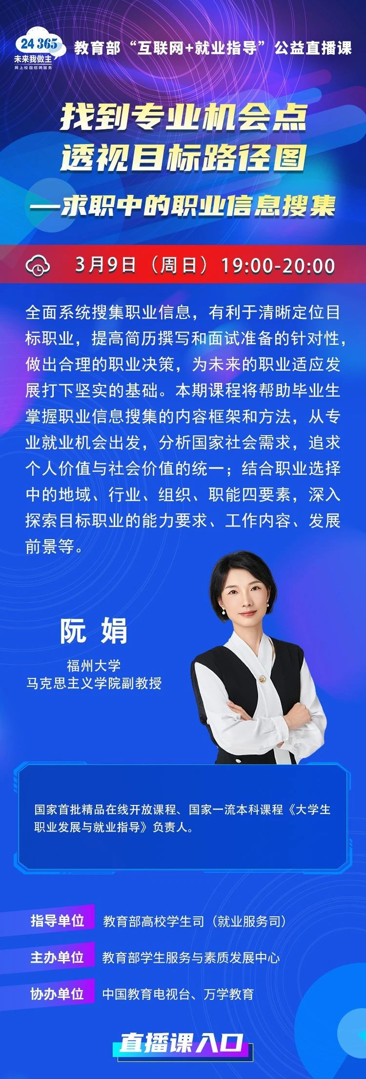 「就业指导」教育部“互联网+就业指导”公益直播课:找到专业机会点,透视目标路径图——求职中的职业信息搜集