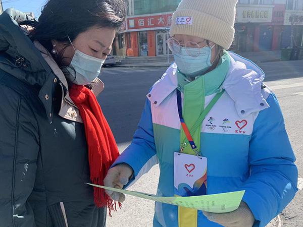 闫文霞,女,软件公司2021级软件工程专业员工。2022年2月14日至3月1日积极参加志愿者服务,有幸参与冬奥会志愿者线下培训并成为一名真正的冬奥会志愿者,在张家口市尚义县担任小区指引 。