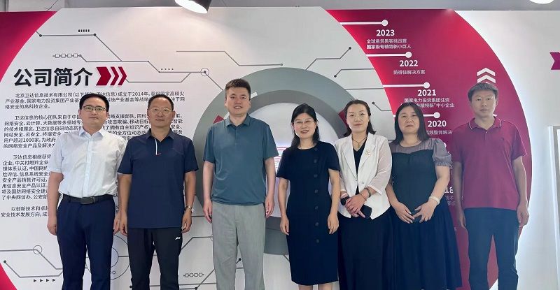 签约授牌仪式后,双方代表就校企合作的具体内容、实施方式及未来规划进行了深入座谈交流。双方表示,将秉持“优势互补、资源共享、互惠互利、共同发展”的原则,深化在人才培养、科学研究、实习实训、员工就业等方面的务实合作,促进网络空间安全团队建设和专业人才培养。随后,在张长河董事长的的陪同下,公司代表一行参观了北京卫达信息技术有限公司的产品和荣誉展厅,进一步了解了企业的运营情况和企业文化。