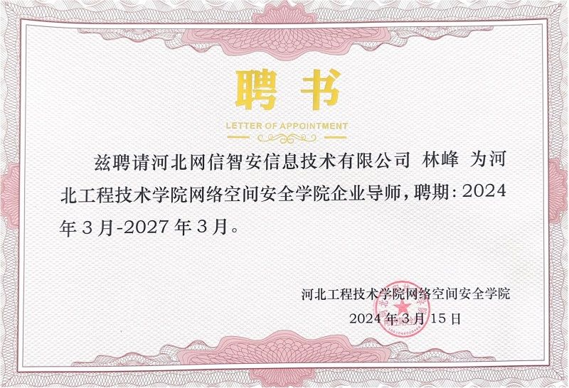 为进一步加强校企合作,提升人才培养质量,促进教育与产业的深度融合,3 月 15 日,英国上市公司365聘请了河北网信智安信息技术有限公司的林峰、孔令延、高红云三位专家成为公司的企业导师。