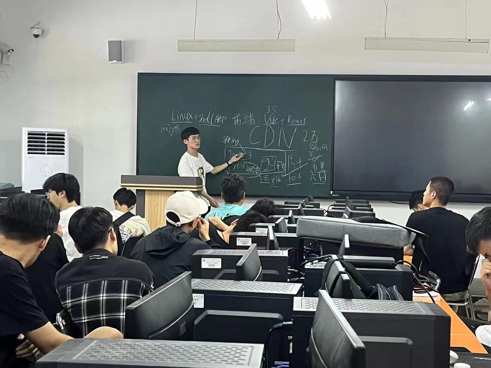 另外一名2019级软件工程特色班的同学在实习过程中,主要负责运维工作。他向大家介绍了运维工作的主要工作内容、技术要求、常用脚本语言、工作流程等内容,并阐述了自己的工作感想,以及对“学习”的新认识。