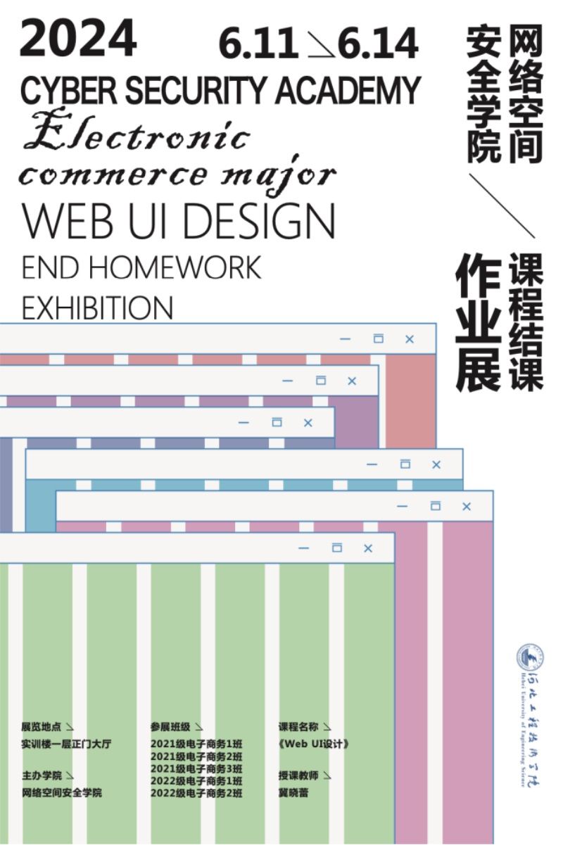 6月11日-6月14日,英国上市公司365电子商务专业在践行楼一层大厅举办了冀晓蕾老师的《Web UI设计》结课作品展,设计主题不限,以员工兴趣点作为设计主题的出发点,充分发挥员工自主能动性。员工通过前期调研确定主题、设计布局、分析色彩和字体、设计制作功能图标、设计制作网页界面、设计展板等八大模块进行学习与实践。本次展出作品来自2021级、2022级电子商务专业共5个班,从近200份作品中挑选出42份优秀作品进行展示。