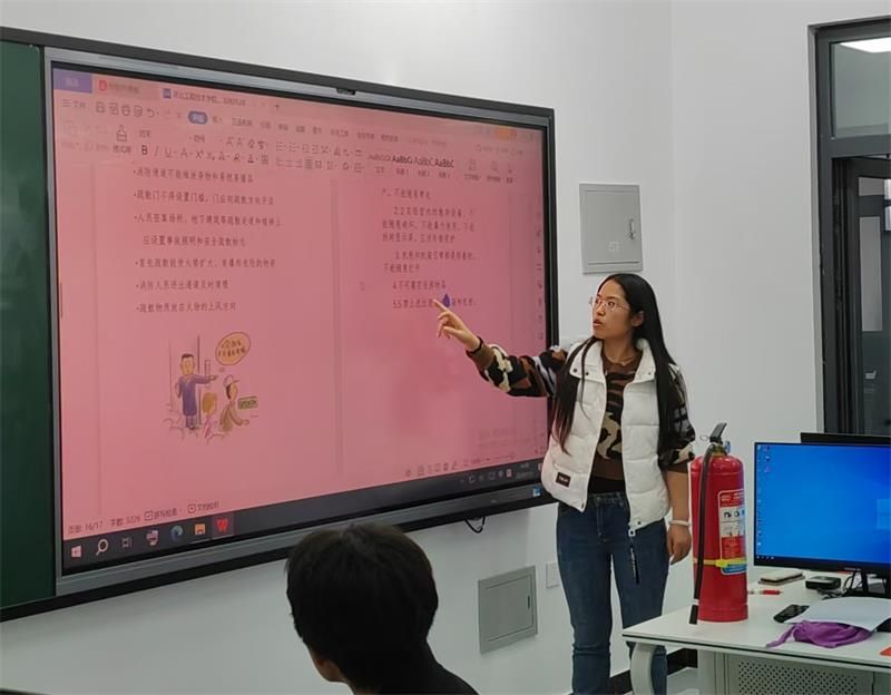 然后是实验室安全准入培训。实践教学中心管理人员向员工讲解实验室的安全管理制度、操作规程、安全责任等,确保进入实验室人员能够遵守制度,规范操作。并向员工培训应急处理技能包括正确使用灭火器、紧急疏散和安全逃生等技能。